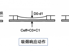 为了解决容易误触发这一大问题,电容式咪头开始被应用于电子烟上。电容式咪头响应外部动作的原理是通过气流引起导电薄膜的形变引发等效电容变化来实现的,同时为了避免外界的干扰,当变化量达到一定值时,检测模块才对内部输出吸烟信号。