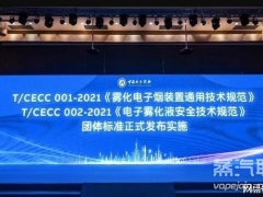 9 月 28 日下午,2021 电子烟团体标准发布暨规范发展宣贯会在深圳宝安召开。经过 43 家企业历时 7 个月的标准征集意见、评审,两项电子烟行业的团体标准文件《电子雾化液安全技术规范》、《雾化电子烟装置通用技术规范》正式发布。