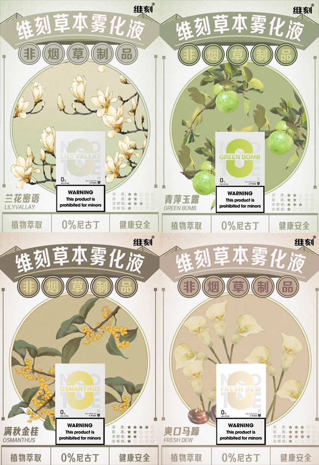 维刻0尼口味:兰花密语、青萍玉露、满秋金桂、爽口马蹄