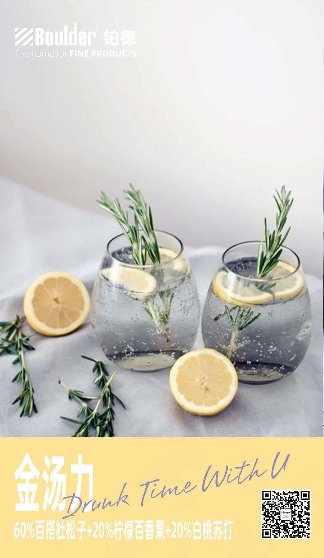 我先以「百搭杜松子」为基油,展现几款酒系配方。金汤力、马天尼、长岛冰茶是金酒系列的经典之作,只将味道复刻,没有了醉酒的难堪,能让你全天无差别感受到「千杯不醉」的微醺效果。