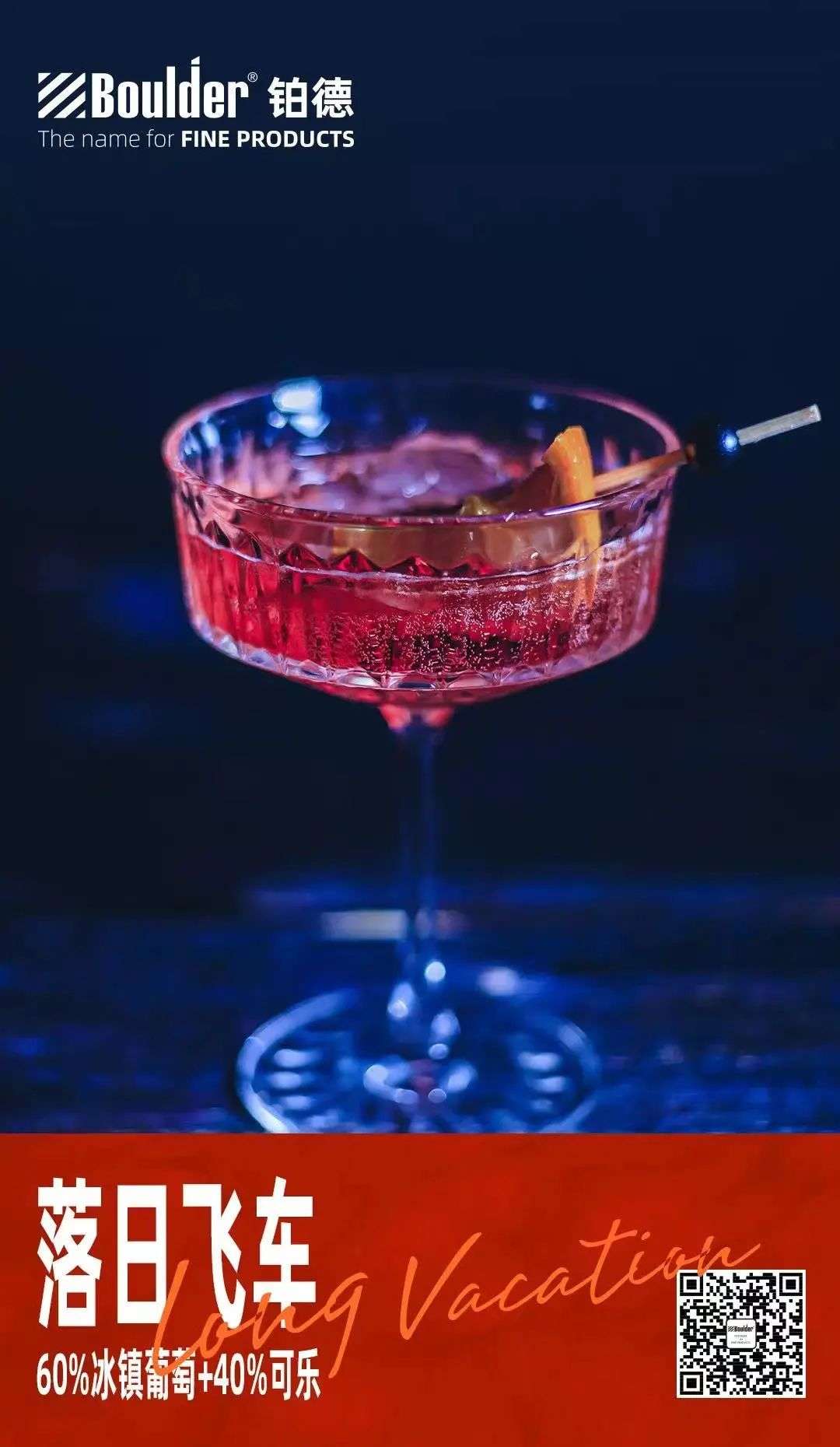 这里十分推荐「落日飞车」配方,口感就像将几颗结冰的葡萄丢进可乐线条机中,气泡充盈于口,甜度值和沙口感满分!