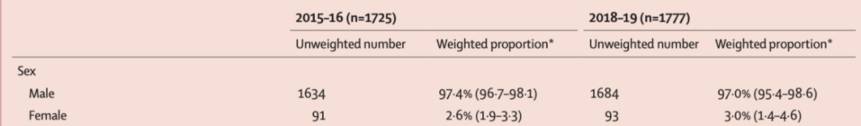 研究结果表明,从2015年到2019年,中国成人电子烟使用率从1.3%升至1.6%,其中男性用户几乎占据绝大部分,占比约为97%。