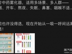 不客气的说,这些套路很像是早些年电视购物里的江湖骗子。这样下去草本雾化这条赛道很可能被没有操守和没有中医药背景的人做烂。草本雾化是传统中医学丸散膏丹四类形态之外的第五类形态。是一个全新的蓝海赛道,这个赛道是需要一定的准入门槛的,没有中医学背景你别搞这个。