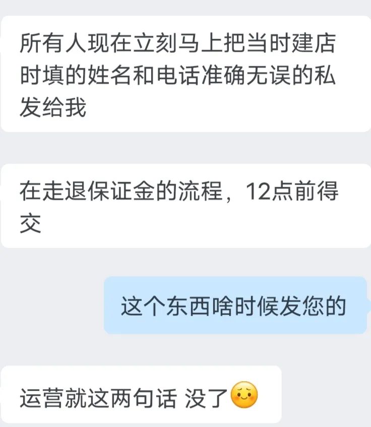 一位店主告诉格物,代理商当前确实有收集缴纳保证金的相关信息,但也明确表示,保证金不会在近期退还,要等该店主的合约到期之后,延迟2——3个月再下发。在此之前,他们会先处理那些合约更早到期的门店。这位店主无奈表示,“届时新规已经落地至少3个月了”。