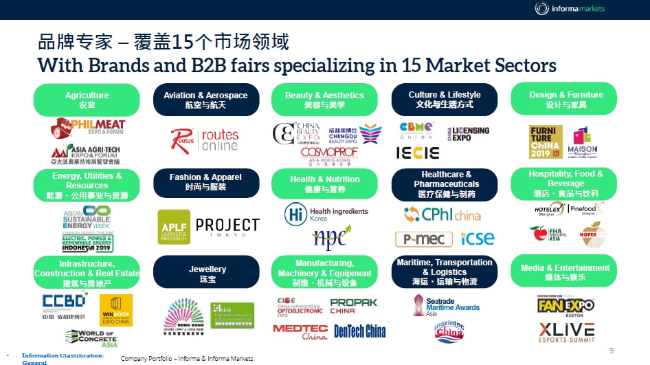 图为:英富曼集团Informa Markets 部分品牌展会