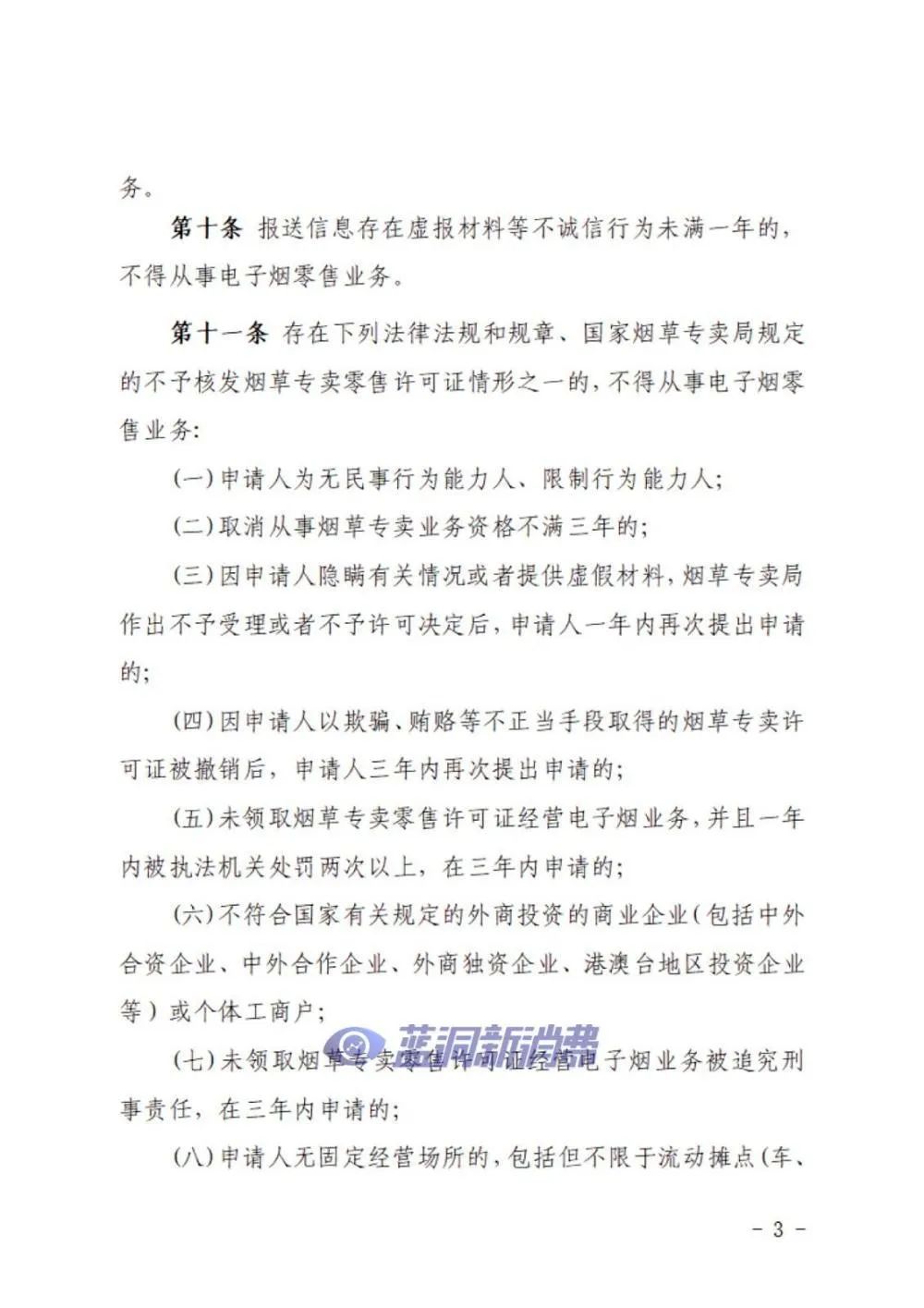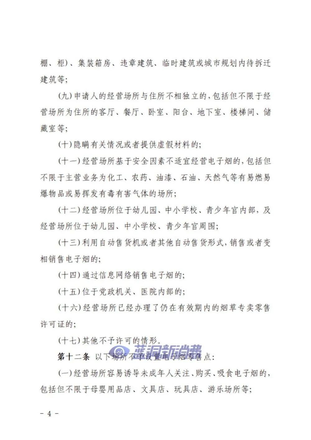 注意看最上面列举的类型,店中店模式将无法申请,可以理解为只销售电子烟的专业店铺才有机会申请许可证。有其他经营业务的将不会获得。