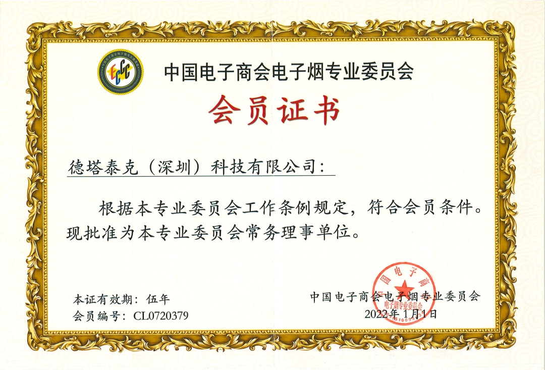 (电子烟专业委员会会员证书)