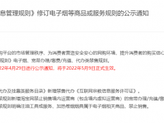 5月6日消息,淘宝近期发布《淘宝平台违禁信息管理规则》,将修订《淘宝平台违禁信息管理规则》电子烟等禁售规则。