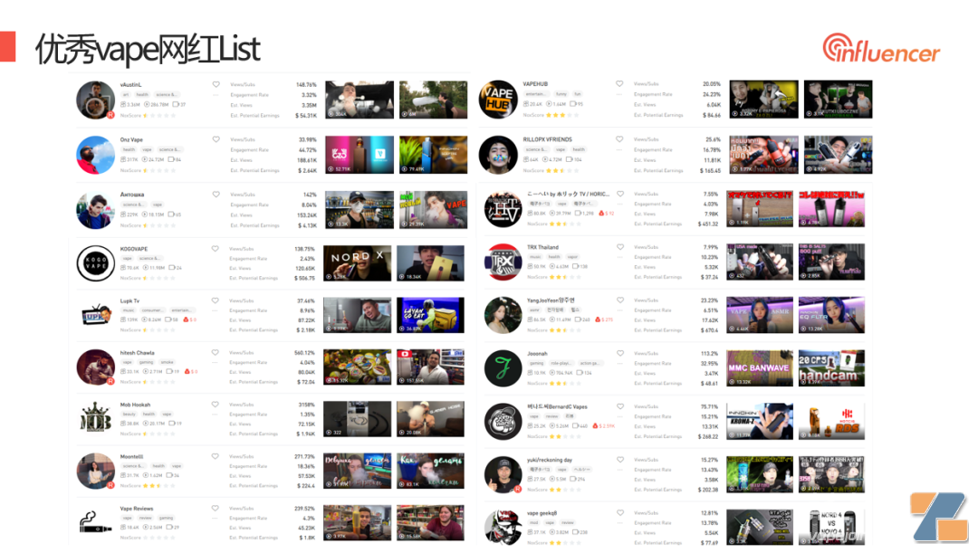 电子烟行业优秀网红推荐list