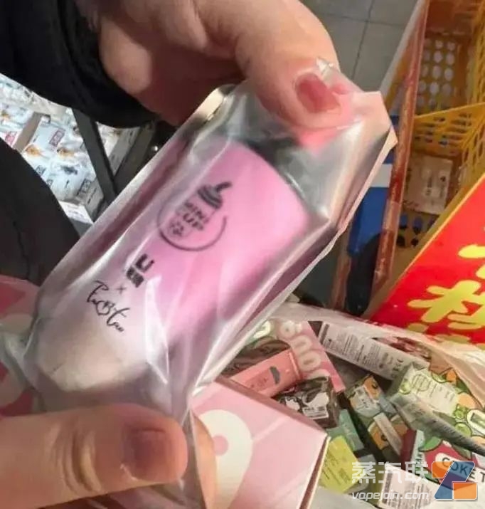 29日,在和平路一家超市,记者发现了两个“奶茶杯”电子烟摆在收银台上,和五颜六色的口香糖、零食等放在一起,让人很难辨别出这是电子烟。