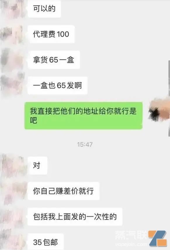 其中一位客服告知,他们就是生产商,从广东发货,如果身边要的人多的话,可以成为他们的代理。代理费交100元就可以以进价从他这里拿货,市面上已经炒到100多元的某品牌水果口味的烟弹,只需要65元;“奶茶杯”等一次性电子烟产品,进货价平均35元左右。“不用担心压货,有需要的直接把地址给我,一件也包邮,售价你自己定,自己赚差价,甚至可以对半赚。”但当记者询问是否有生产商能提供相关资质的时候,对方没有做正面回应。