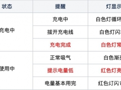 潮汐灯效主要出现在正常抽吸时,4个LED灯会循环闪烁,如潮汐一般。在充电时也可以看到潮汐灯效,会从现在灯数一点点亮到满,再重复循环。