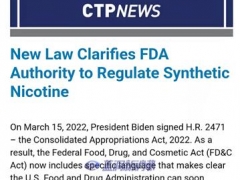 2023年8月11日,FDA向新型烟草产品制造商——Amarillo鼻烟公司发出了一封警告信,原因是该公司制造、销售、分销未经授权的非烟草(合成)尼古丁产品,包括用玉米皮代替烟叶制成的产品。这些产品含有非烟草尼古丁,因此属于FDA监管的权力范围。