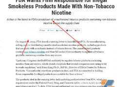 FDA烟草产品中心主任Brian King博士表示,“去年,国会明确了FDA对包含任何来源尼古丁的烟草产品的监管权威,这消除了一些公司试图逃避监管的漏洞,”“我们对这些产品的管辖权是明确的,FDA致力于追究非法产品的责任人的行为。”