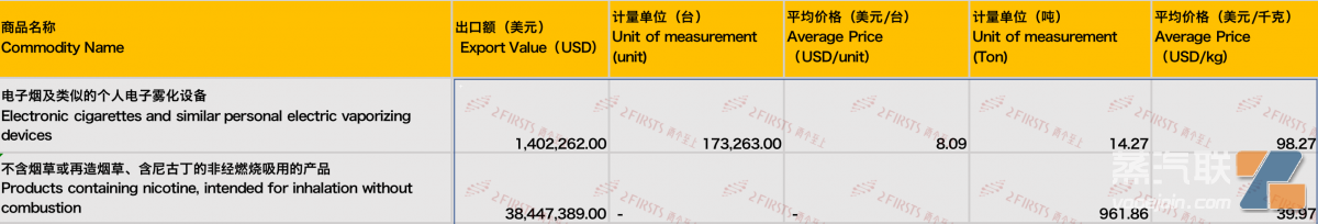 【两个至上快讯】根据中华人民共和国海关总署更新的贸易数据,两个至上统计了2023年8月中国出口到荷兰的电子烟数据。具体如下: