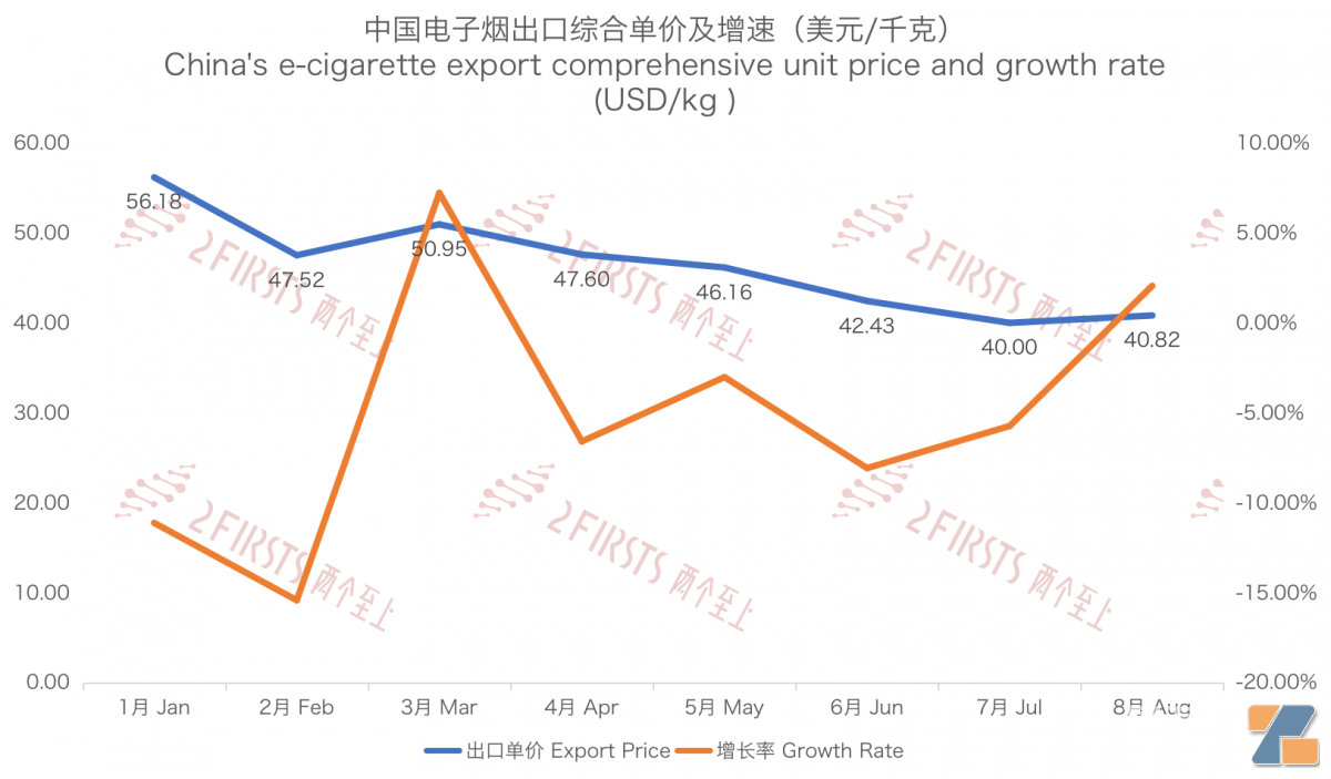 出口单价为40.82美元/千克(约合人民币298元/千克),环比增长2.06%,同比下降48.66%。