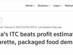 【两个至上快讯】据印度加尔各答每日电讯报在12月7日报道,在英美烟草(BAT)股票被大幅抛售导致股价大跌后,印度ITC有限公司(ITC Ltd)已成为全球第三大烟草公司,取代了英美烟草公司(BAT)。