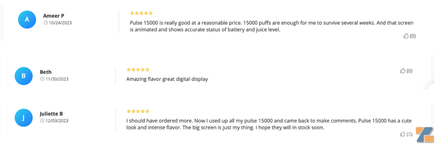 在购物网站上的评价显示,购买者对屏显电子烟的喜爱度高|图源:电子烟线上商店