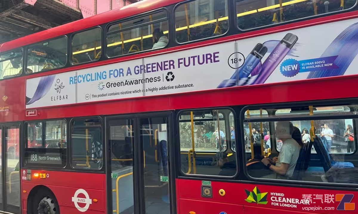 ELFBAR在英国关于一次性电子烟回收的巴士广告|图源:ELFBAR社交平台账号