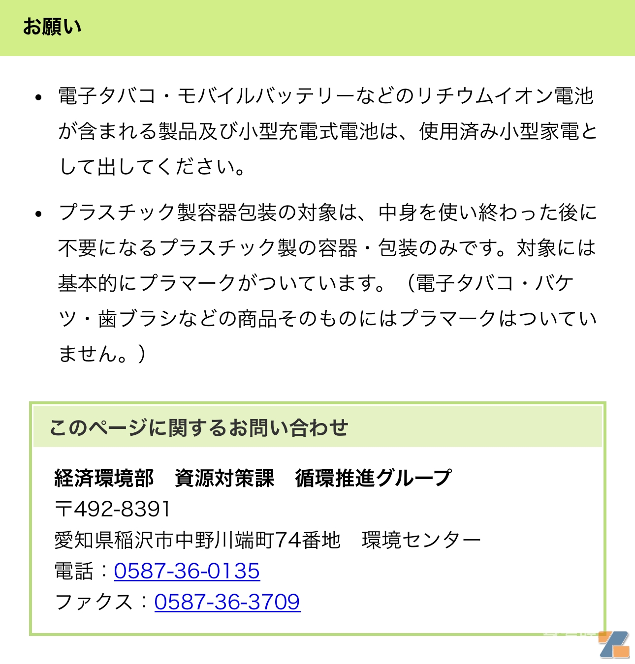 在丢弃电子烟数次引发火情后,日本多地要求居民将电子烟作“小家电”进行严格处理|图源:政府网站截图