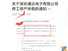 因电子烟业务量不足,深圳通达电子停工停产休假
