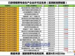 国家烟草专卖局公开数据:已办结21家电子烟企业生产许可证申请