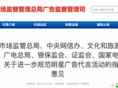 七部门出手规范明星广告代言活动:不得代言电子烟、校外培训、药品等