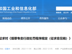 工信部就修订《烟草专卖行政处罚程序规定》征求意见:电子烟适用