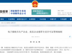 《电子烟相关生产企业、批发企业烟草专卖许可证管理细则》发布