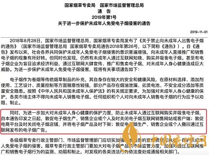 11月1日下午,参加完上海展会,带着满满的收获坐上高铁回南京,正准备眯一会缓解三天的疲倦,微信突然不断弹出消息提醒,大家纷纷发来了各种截图与链接,内容都是国家烟草专卖局和国家市场监督管理总局联合发布的《关于进一步保护未成年人免受电子烟侵害的通告》(下称“通告”)相关内容。