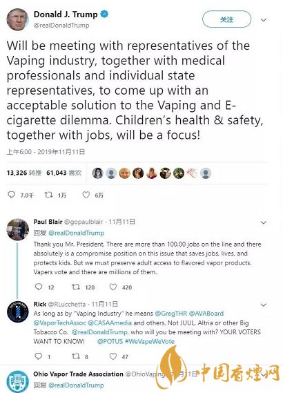 以上就是小编带来的关于电子烟用户集聚白宫 美国电子烟禁令有望缓和的相关内容,想要了解更多关于电子烟内容的,欢迎点击:CDC表示美国爆发的肺部疾病 与电子烟无关!