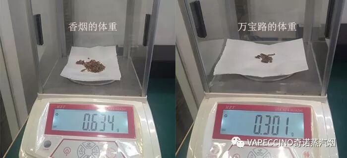我们也可从这两款产品的体重进行对比。万宝路的烟丝重量约为300毫克, 而香烟中含有的烟草为550-700毫克。