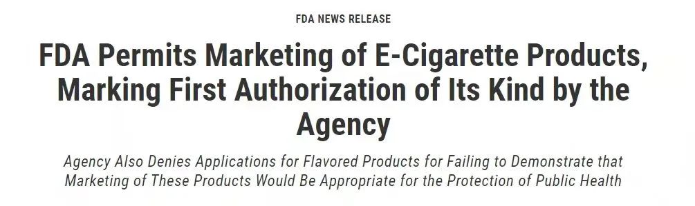美国食品药品监督管理局(FDA)首次通过了英美烟草旗下Vuse Solo系列3个电子烟产品的PMTA(烟草上市前申请)审核,经过层层检测后,FDA认为这3款电子烟产品能帮烟民减害,这是有史以来美国FDA第一次授权电子烟产品在美国市场合法销售。