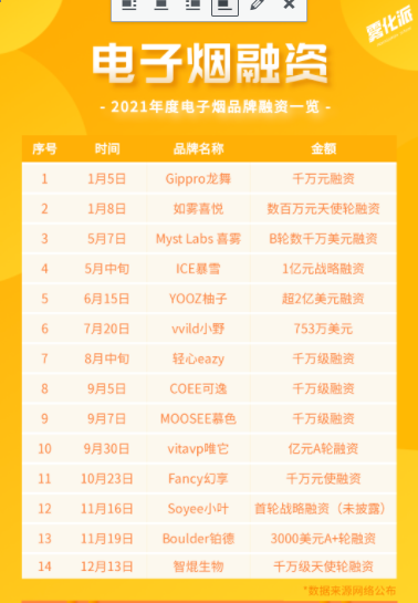 2021年度电子烟品牌融资一览
