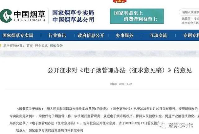 据21世纪商业评论报道,电子烟监管过渡期或将持续5~7个月。电子烟等待新规落地30余天,这个暴利的行业,悄然生变。2021年12月初,《电子烟管理办法》(征求意见稿)公布,提出从事电子烟生产、批发和零售业务应取得烟草专卖行政主管部门许可,除了电子烟交易管理平台之外,不允许电子烟流通。