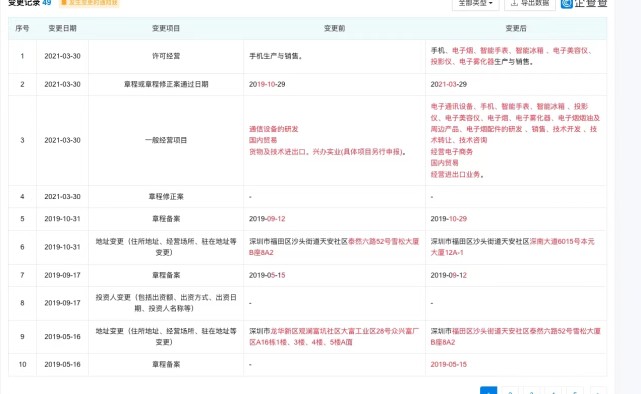 (《专利侵权纠纷案件行政裁决书》)企查查资料显示,波尔品牌母公司深圳市传奇数码公司注册于2005年,长期从事通信设备研发等业务。该公司于2021年3月变更增加了电子烟研发、销售等业务。