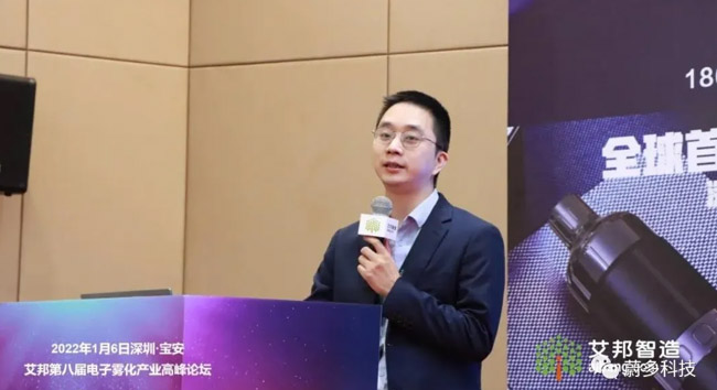 1月6日下午两点,由本次会议由艾邦智造主办的"第八届电子雾化产业高峰论坛"在深圳宝安举办,技术工程师、电子雾化产业链上下游的专家、专家学者、各知名企业代表等社会各界人士齐聚一堂,共同瞭望产业发展新趋势,探寻雾化科技产业高质量发展的道路。蔚多CEO赵兴刚先生很荣幸代表蔚多科技受邀参加此次峰会。赛尔美、汉方本草、波顿集团、博迪厦门中恩珍吸、国研、修正药业集团深圳分公司、奥楚科技、蔚多科技等企业主要围绕草本雾化相关的市场、技术、工艺等方面进行讨论并分享自己的看法。