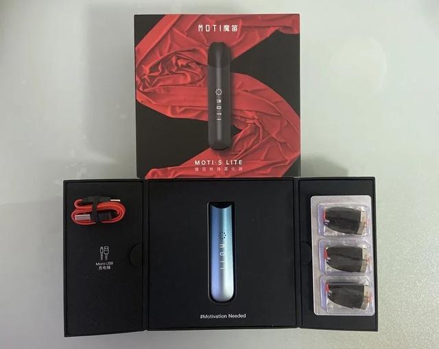 包装盒风格与MOTI S相同,抽出硬纸卡壳内部套装套盒对开门设计,有意思的是内部采用仿绸面,摸起来能体现一种高端感。烟杆为铝合金材质,精加工CNC铣工艺,棱角硬朗的同时手感顺滑,刚中带柔。渐变色的处理采用阳极氧化工艺,过渡自然柔和不生硬。机身外观与Moti S差别不大,呼吸灯、棱角、烟弹吸嘴造型基本相同。另外S Lite具有防贪多提醒功能,10分钟内抽吸口数达到20口,会有一次振动。【单项评分:9/10】