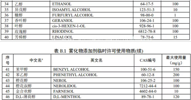 综上,醇类“白名单”限用量不会对薄荷草本类产品产生大的影响,多种醇类有机物也给烟油调制提供了足够的辅助溶剂选择。