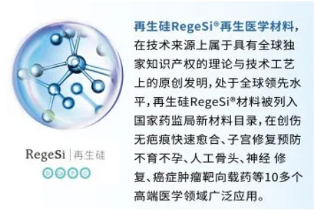 同时,再生硅也将被重点引进。再生硅在保护生物活性的基础上,解决了分子异构化的问题。再生硅RegeSi再生医学材料,可应用在口腔胃粘膜修复、肺部修复、神经修复等10多个医学领域。
