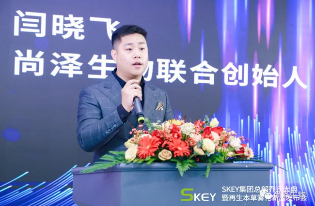 随后,SKEY集团旗下全资子公司尚泽生物的联合创始人闫晓飞先生分享了《尚泽生物在本草雾化领域的布局及最新成果》,并重磅推出再生本草雾化新品。