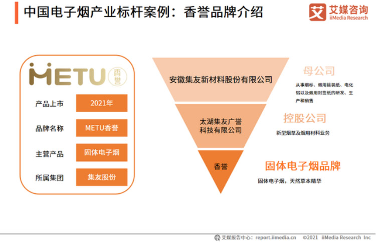 太湖集友广誉科技有限公司(简称“太湖集友广誉”)成立于2020年,背靠国内烟用包装高新技术企业安徽集友新材料股份有限公司(集友股份,上市代码603429),布局新型烟草及烟用材料业务。作为新创企业,太湖集友广誉高度重视产品研发,2021年4月,以独特工艺萃取天然草本精华的固体电子烟产品(品牌香誉)正式面向市场和消费者。