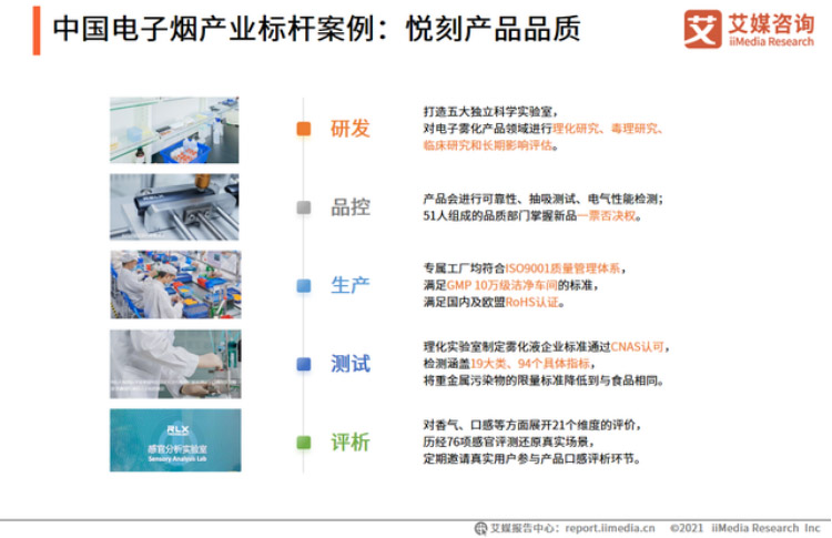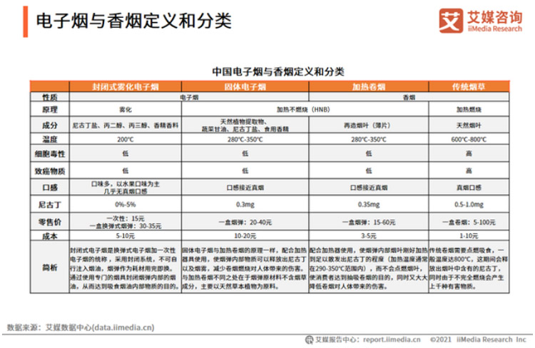 2021年以来,国务院陆续发布并完善了电子烟相关国标和管理方法,明确电子烟归属烟草专卖局管理,将电子烟定性为新型烟草制品,促使电子烟行业的生产和经营变得更规范化。艾媒咨询分析师认为,新规意味着电子烟作为新型烟草制品正式在国家法律层面上获得合法身份,牌照的推行将从源头对电子烟市场主体在生产、批发和零售环节的资质加强监管,将极大改善国内混乱无序的经营状态。