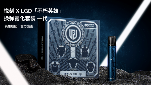 RELX悦刻X LGD“不朽英雄”联名套装有着满满的电竞风,售价:269元。内含1根LGD联名款雾化杆+5张LGD明信片+2张贴纸+1根数据线+说明书。