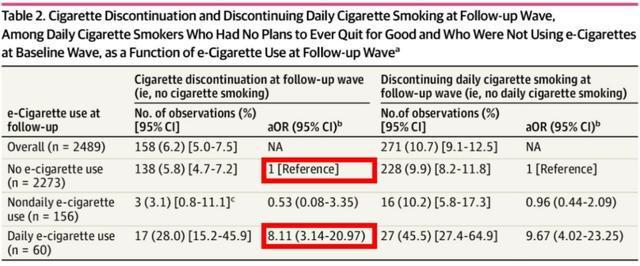图注:每天使用电子烟的烟民比传统卷烟烟民戒烟率高出8倍