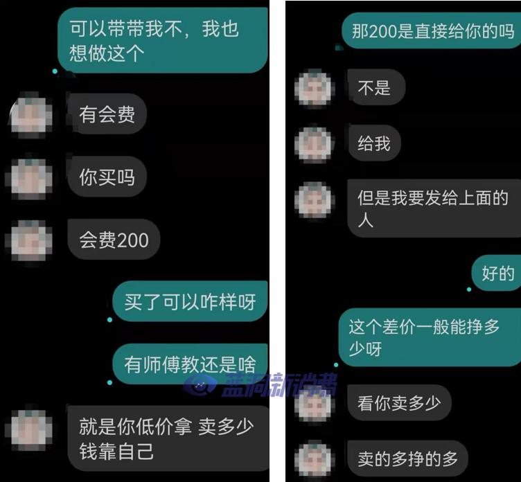 “会费不是交给我,是交给上面的人。”卖家“小胡”(化名)表示。交纳会费后,记者就能从小胡处进货,至于能挣多少钱,“全部看自己本事”。