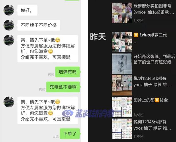 客服称“加微信交流”,朋友圈均为电子烟销售信息