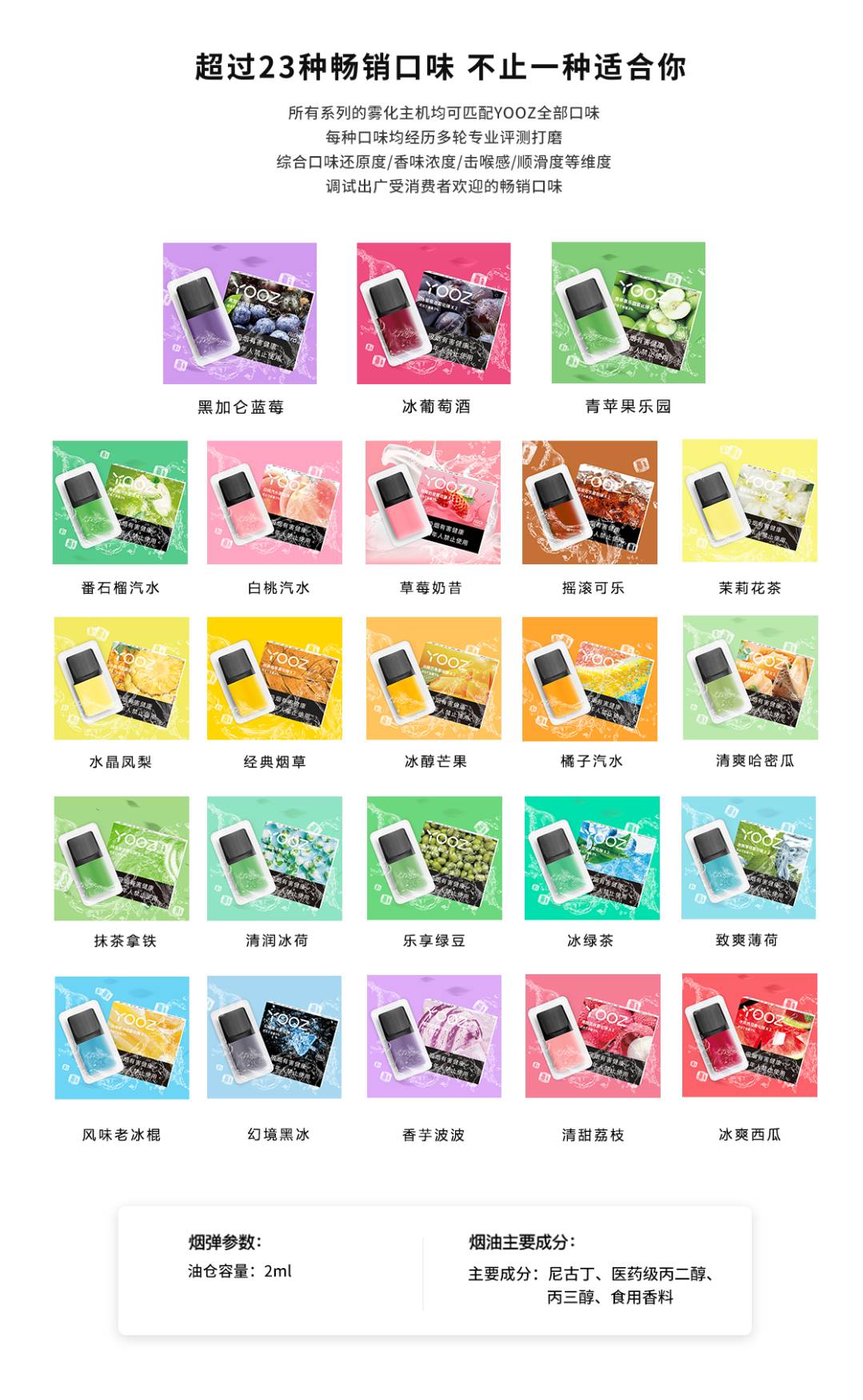 yooz电子烟是现在国内比较知名的电子烟品牌,价格亲民性价比更高,YOOZ柚子 ZERO 2代相比一代在工艺和技术上都有一个全面的升级,整体性能提升了60%,产品比一代更加成熟,稳定,体验更好,外观主打渐变色和更加时尚的工艺,和一代烟弹通用。