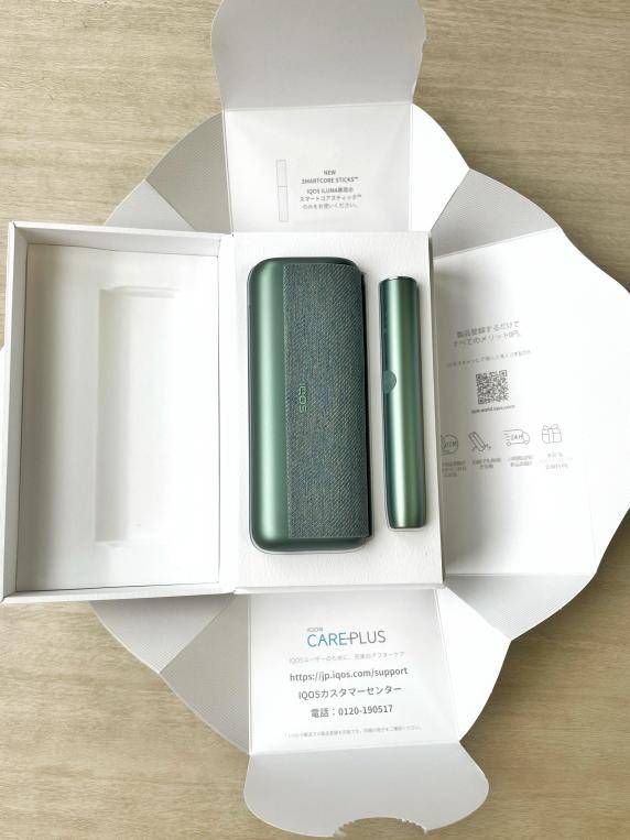 由于上市数量有限、加上疫情、物流等种种原因国内始终无法第一时间体验。小编几经波折,终于买到了一台IQOS ILUMA PRIME绿色。几经辗转从日本来到云南昆明的喜科总部。真机质感非凡、定制化更强,是喜科乃至全行业学习的榜样!这台ILUMA PRIME应该是国内第一台公开揭秘国产适配低温本草制品的新一代加热器。充电仓的保护盖是PU+纤维布料,可以随心进行替换混搭,总重约为171.5克。设备不匹配之前在售的所有低温本草产品,日本市场目前只有TEREA这款为ILUMA特制的产品可配套使用。