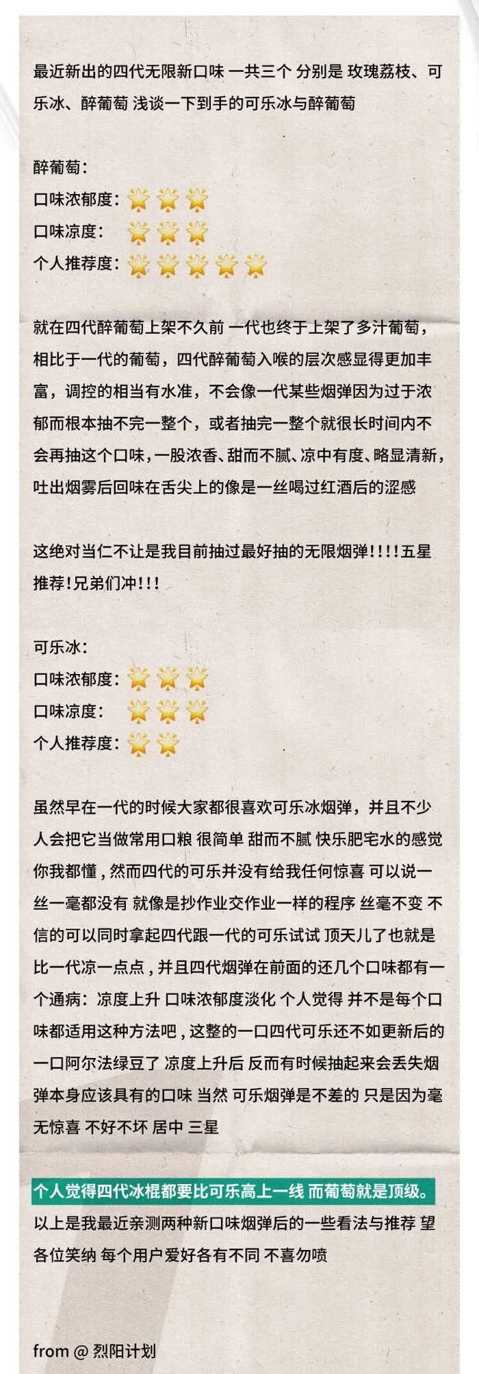 从这个朋友的描述中,我们可以看到,他对于最新出的几个口味,他觉得葡萄是最好抽的了。